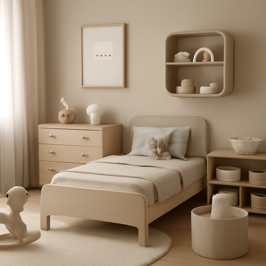 Pentru bebeluși (0-2 ani), culori soft și neutre sunt ideale. Adaugă contraste ușoare cu alb și negru pentru stimularea vizuală.