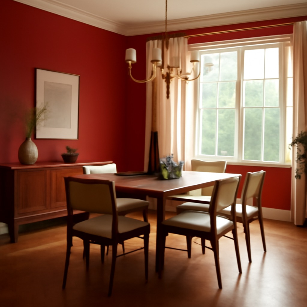 Punctul central al acestei reamenajări dining a fost decizia îndrăzneață de a schimba radical culoarea pereților. De la un verde discret, spațiul a fost transformat prin aplicarea unei nuanțe vibrante de roșu. Această alegere cromatică nu doar că a infuzat energie și personalitate camerei, dar a și creat o atmosferă caldă și primitoare, ideală pentru o zonă de luat masa. Roșul, o culoare asociată adesea cu pasiunea și vitalitatea, a reușit să redefinească complet percepția spațiului, demonstrând puterea culorii în designul interior. Este o dovadă că o singură schimbare majoră poate avea un impact dramatic asupra întregii încăperi.