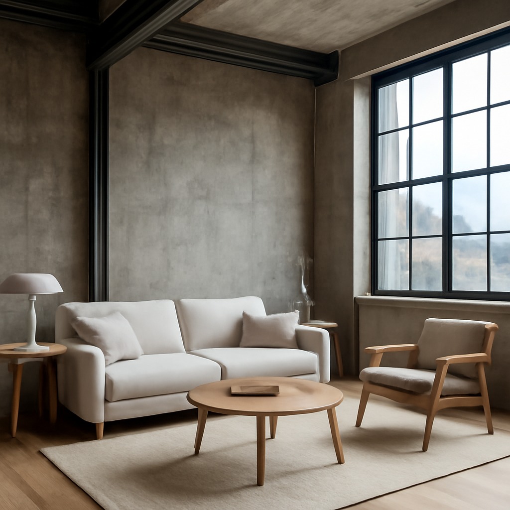 - Echilibru vizual: Contrastul dintre texturile dure (metal, beton) și cele moi (lemn, textile) creează o dinamică vizuală interesantă.