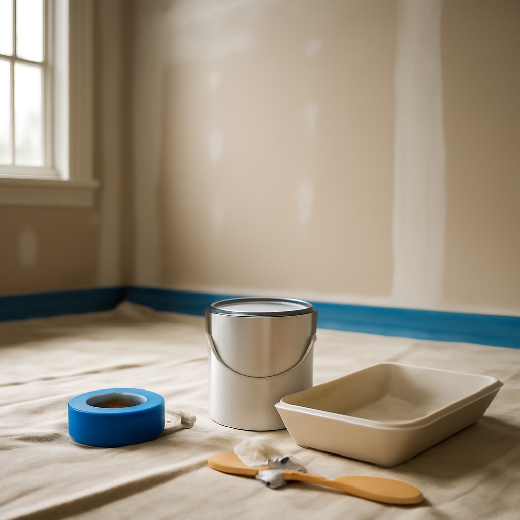 Banda de mascare (tape painter’s) este esentiala pentru margini curate si profesionale. Apleaca banda pe liniile de intalnire dintre perete si plafon, dintre perete si soclu, si in jurul ferestrelor. Apasa bine banda pentru a preveni infiltrarea vopselei sub ea.