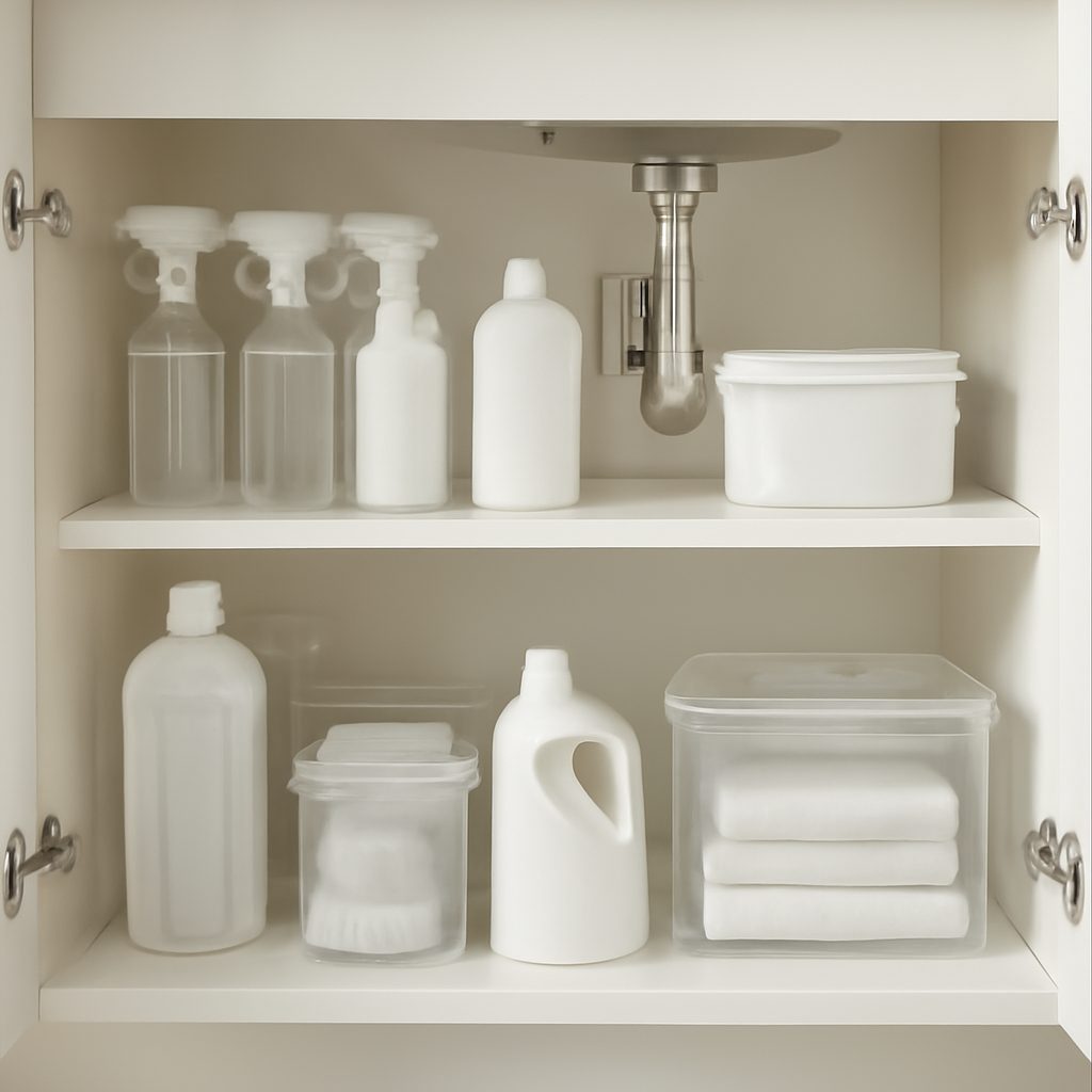 Dulapul de sub chiuveta de bucătărie prezintă particularități care îl fac dificil de organizat. Prezența țevilor, a sifonului și, adesea, a tocătorului de resturi alimentare, fragmentează spațiul, limitând opțiunile de depozitare. În plus, umiditatea ocazională și întunericul pot influența tipurile de articole care pot fi stocate aici. Fără un plan bine stabilit, aceste elemente contribuie la acumularea rapidă a dezordinii, îngreunând accesul la produsele necesare.