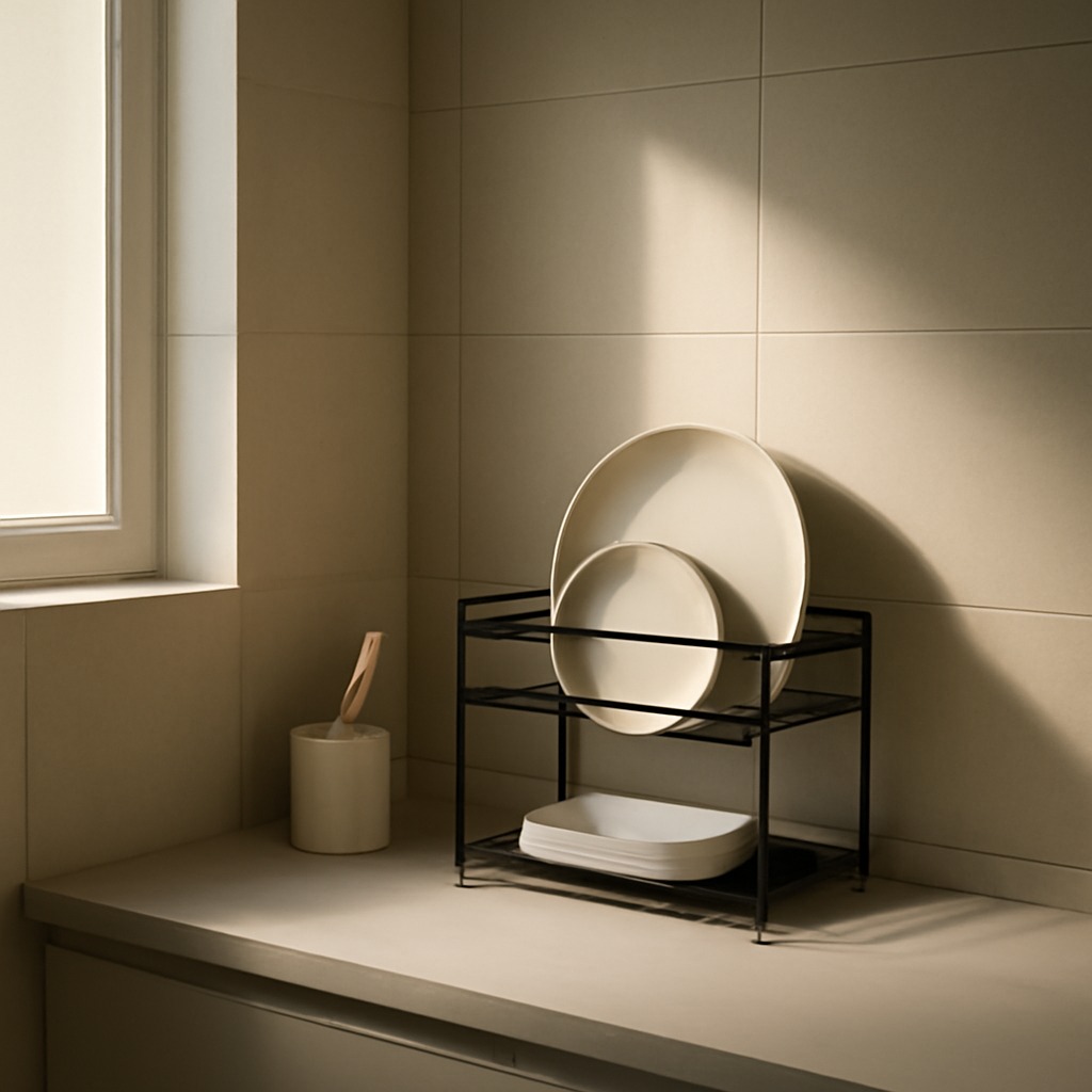 - Optimizarea spațiului din baie: Un suport de uscat vase poate fi folosit nu doar pentru ustensile de bucătărie, ci și pentru uscat bureți, perii de curățat sau chiar anumite articole de igienă personală.